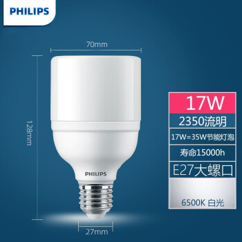 飞利浦恒亮型LED柱泡17W柱形泡6500K/3000K E27螺口