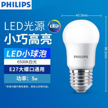 飞利浦恒亮型LED小球泡5W球形泡6500K/3000K E27螺口